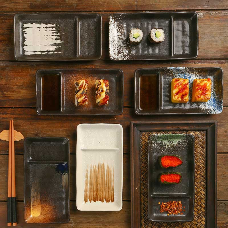 🍣 Double compartiment intégré : sépare sushis/gyoza et sauce soja ou vinaigre, anti-mélange