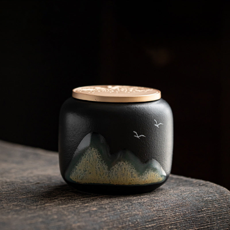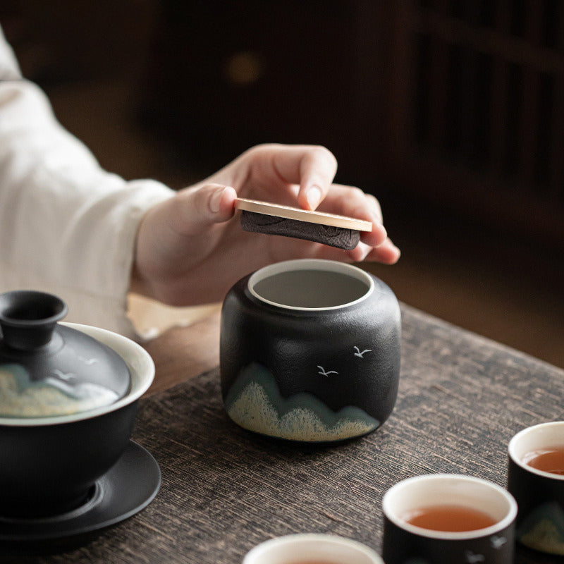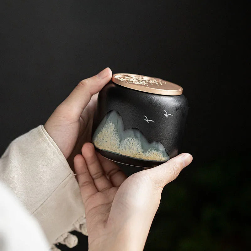 Préservez vos feuilles avec la Boite à Thé Japonaise Céramique aux reflets montagne