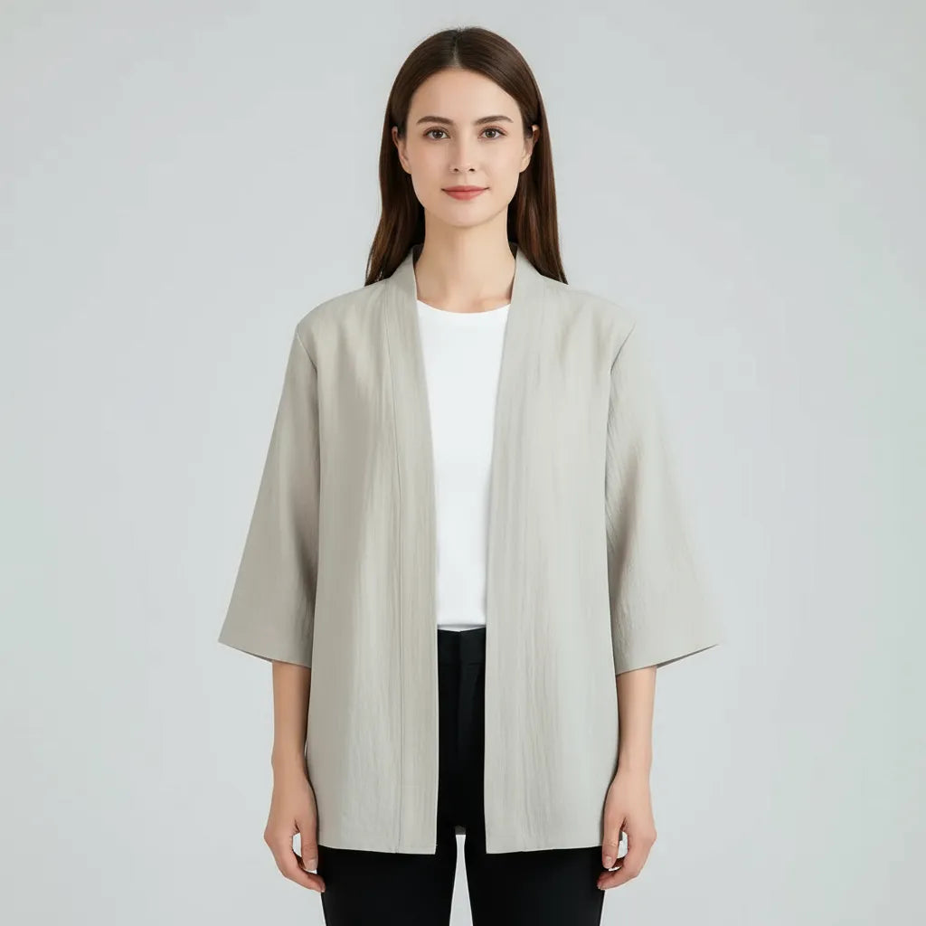 🌾 Tissu naturel haut de gamme : confectionné en 60 % lin et 40 % coton, cet haori allie douceur, respirabilité et durabilité.