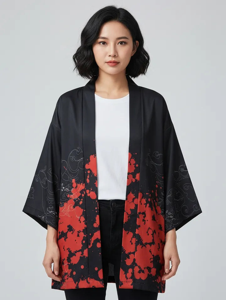 Porter ce haori, c'est s'approprier une pièce artistique au quotidien. Son tissu doux et léger épouse les formes avec élégance, tout en offrant une sensation de confort durable. Associez-le avec des pièces basiques ou plus sophistiquées pour varier les styles et créer une tenue qui se distingue à chaque fois. Ce haori est conçu pour ceux qui cherchent à exprimer leur personnalité à travers des vêtements uniques et captivants.
