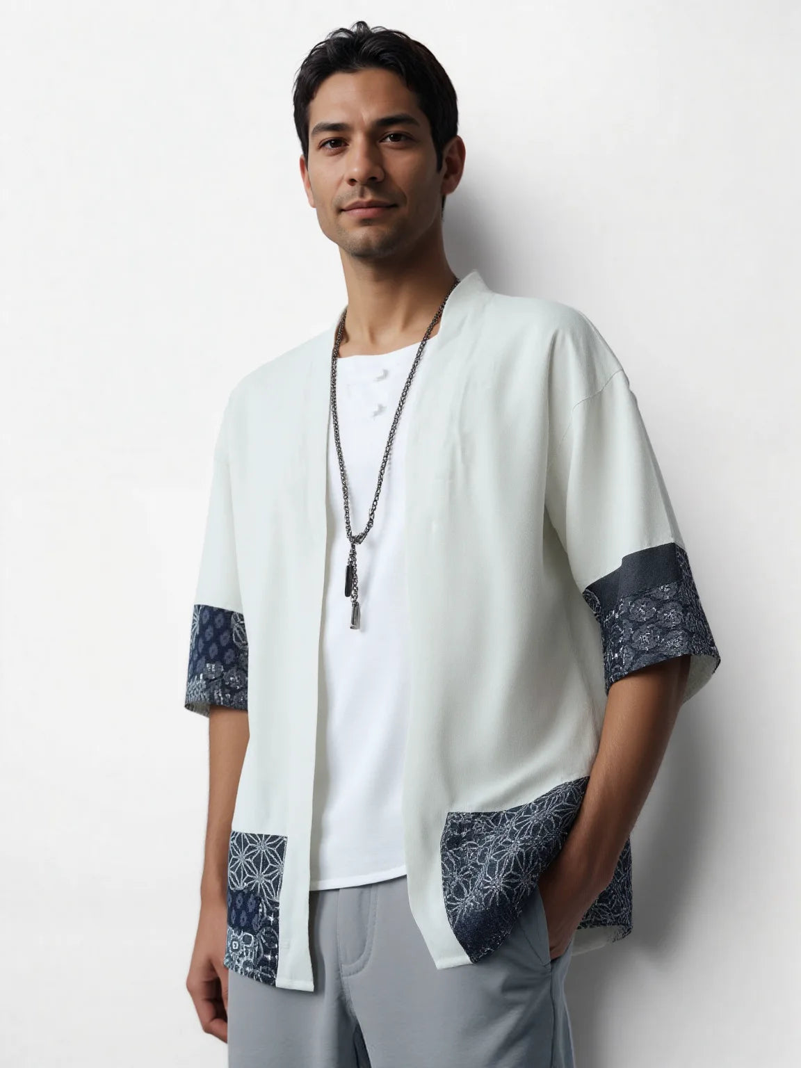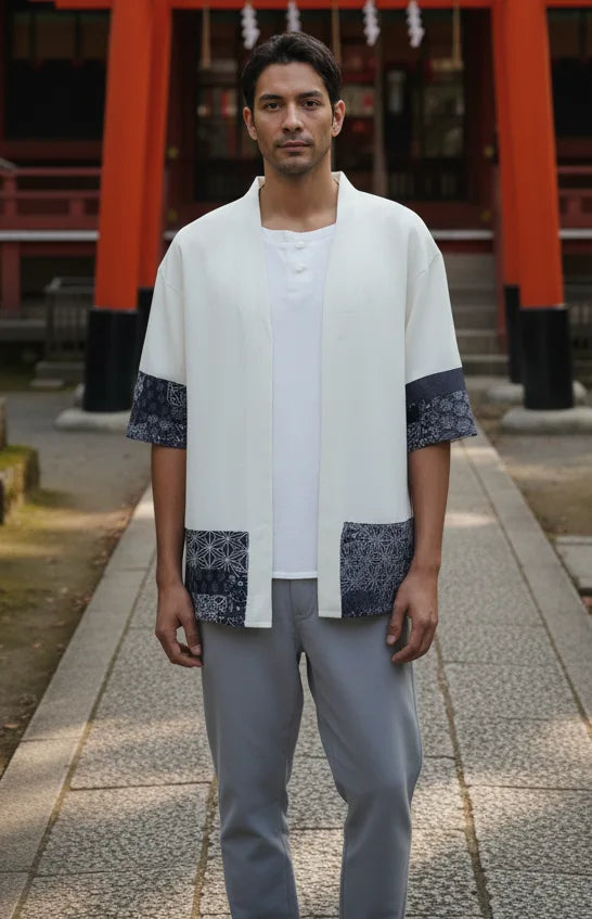 Haori homme beige Asanoha & Sashiko : élégance naturelle et artisanat japonais