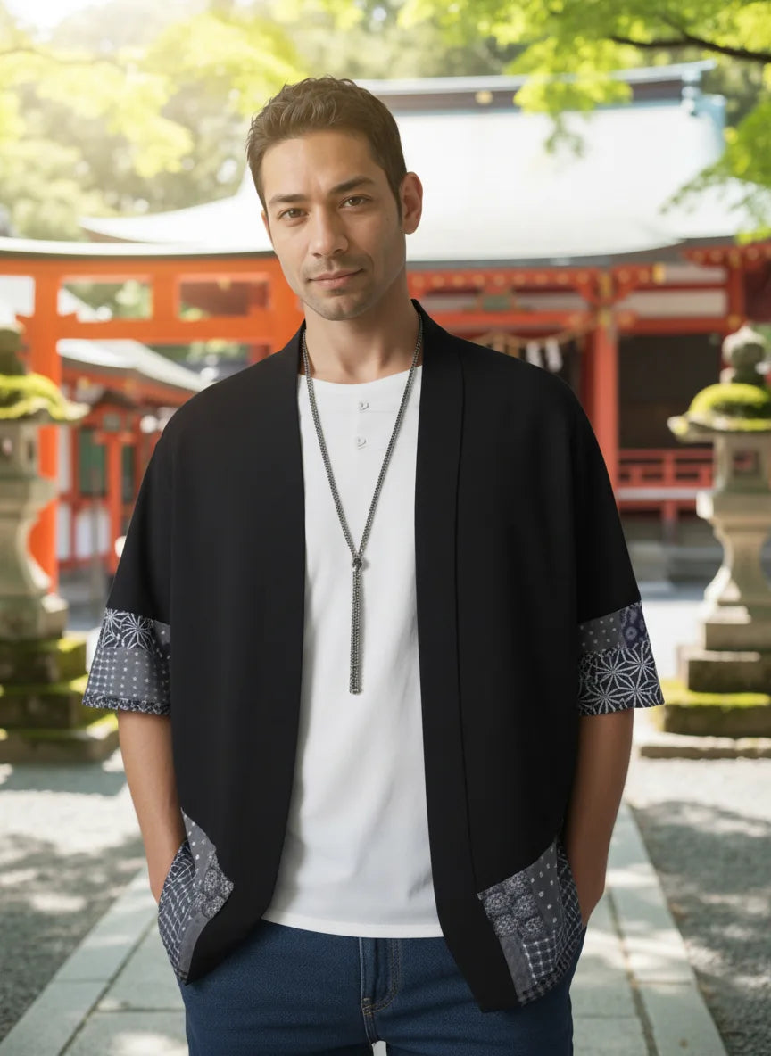 Haori homme noir Asanoha & Sashiko : entre artisanat japonais et style moderne