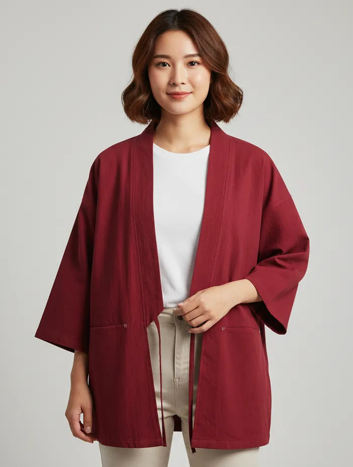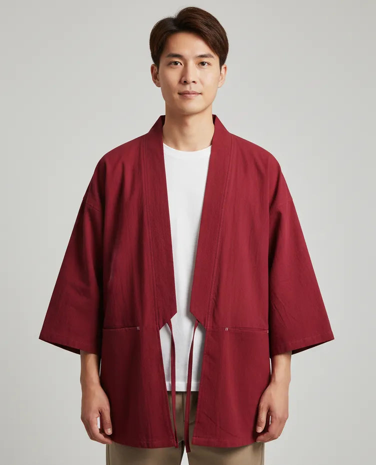 Ce haori rouge combine l’authenticité japonaise et une modernité élégante. Sa teinte audacieuse en fait une pièce unique, facile à porter aussi bien lors d’événements spéciaux qu’au quotidien. Sa matière légère et respirante garantit confort et aisance tout au long de la journée.