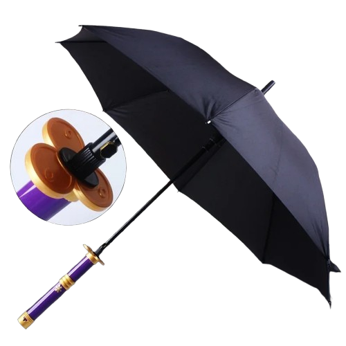 Ce Parapluie Épée Japonais se distingue par sa poignée tsuka reproduisant avec précision le manche d'un katana authentique, directement inspiré par les sabres légendaires de Roronoa Zoro. Porté sur l'épaule ou à la ceinture, il ressemble à s'y méprendre à un véritable sabre de samouraï. Le long manche permet une prise ferme et confortable, imitant la sensation d'un sabre traditionnel.