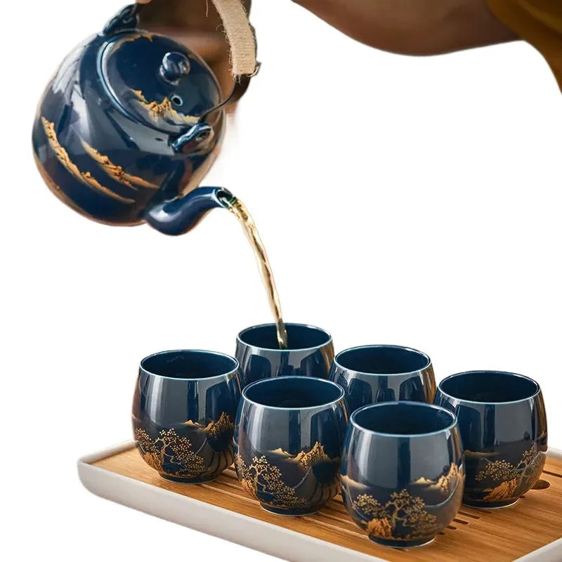 La théière centrale intègre tamis permettant infusion feuilles directement évitant passages indésirables tasses. Les 6 tasses sans anse traditionnelles transmettent chaleur breuvage prise ergonomique confortable. Inertie thermique prolonge saveurs arômes optimaux, entretien éponge simple résiste tanins. Rassurez-vous : certifié contact alimentaire, cadeau prestige prêt offrir collègues amateurs.