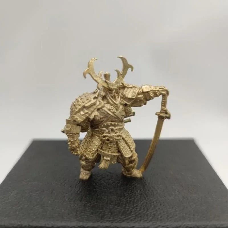 Au-delà de son esthétique remarquable, cette statue incarne les valeurs du code bushido. La finition vintage patinée apporte une touche de prestige et sobriété à votre bureau ou bibliothèque, rappelant constamment ces valeurs intemporelles. Placez cette figurine sous une lampe ou près d'une source lumineuse latérale pour faire ressortir les reflets dorés du laiton et les contrastes de la sculpture.