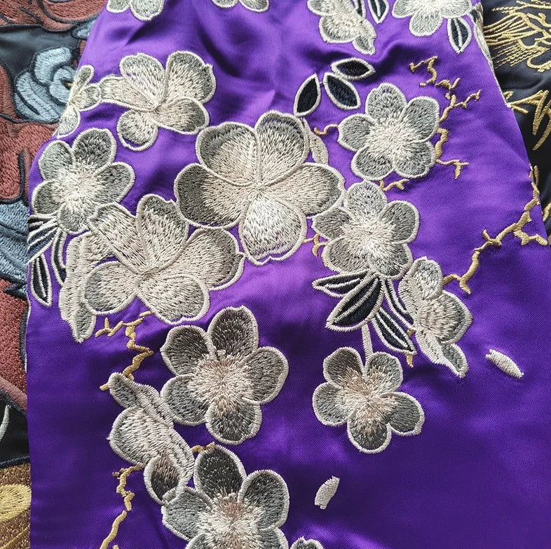 Cette Sukajan met en scène le duel mythique entre Fujin et Raijin, représentés dans un style inspiré des estampes japonaises. Leur présence brodée donne à ce bomber une aura spectaculaire, tout en restant confortable et facile à porter au quotidien.