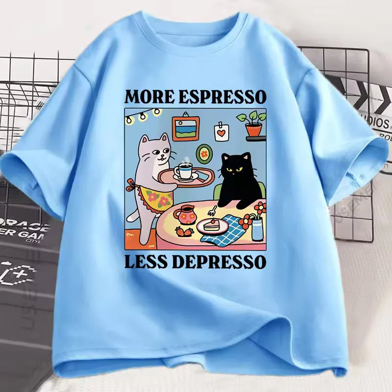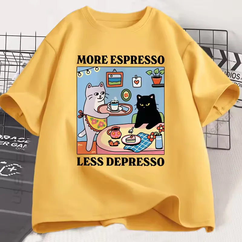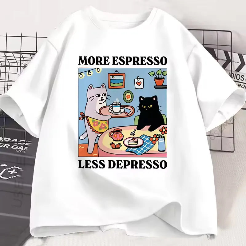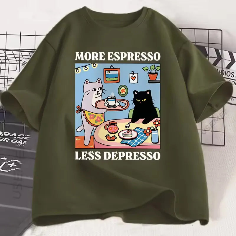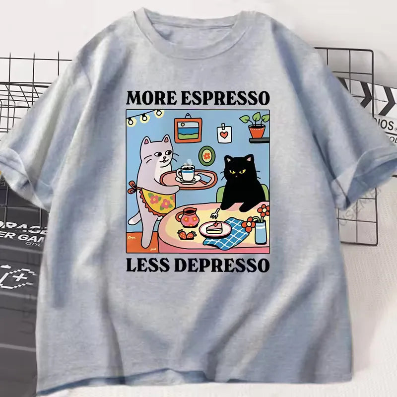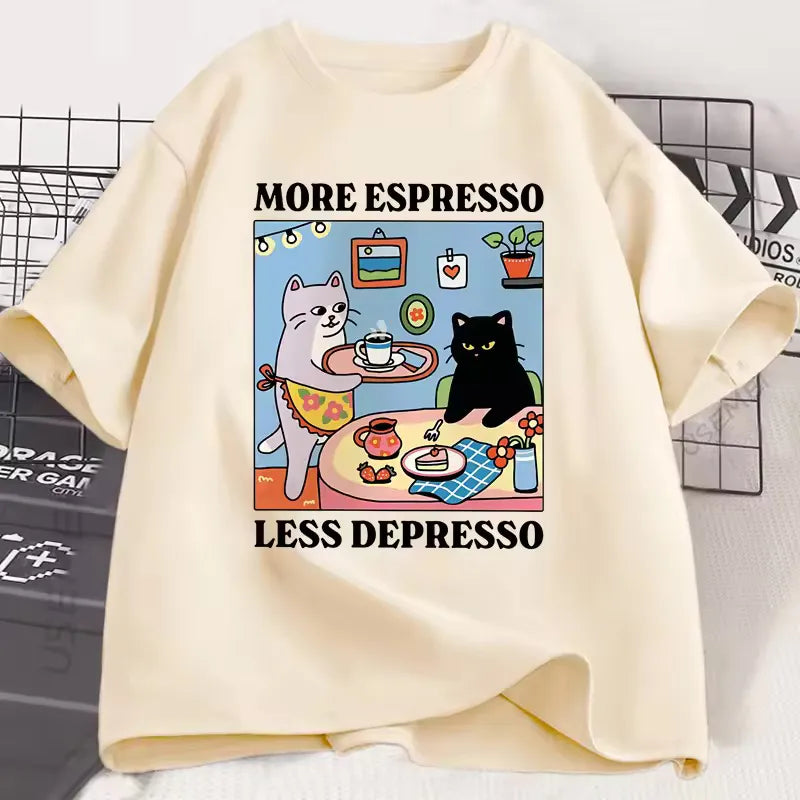 T-shirt japonais More Espresso Less Depresso ☕🐈 – Bonne humeur garantie