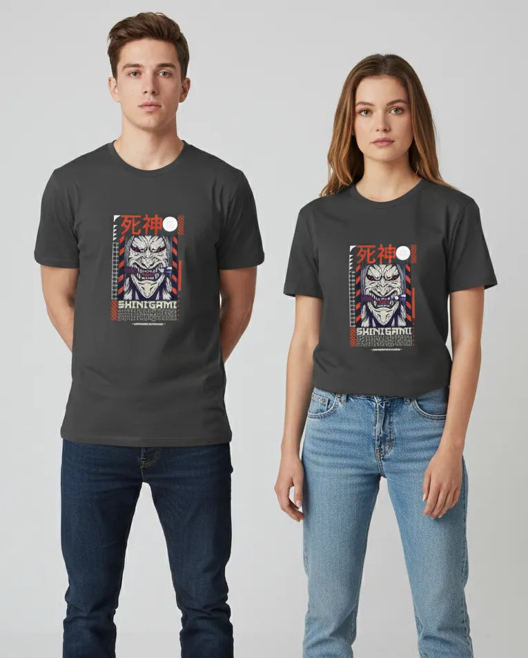 Le T-shirt japonais Shinigami allie mysticisme et modernité. Son design fort, inspiré de la mythologie nippone, symbolise la dualité entre la vie et la mort. Parfait pour les amateurs de culture japonaise ou les esprits rebelles, il apporte une touche de caractère à toutes vos tenues, du look streetwear à la tenue plus urbaine.