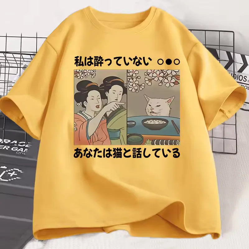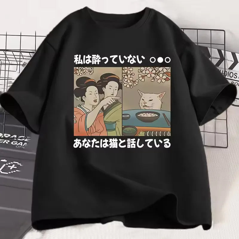 T-shirt japonais Woman Yelling at a Cat 😹 – L’art japonais rencontre le mème culte