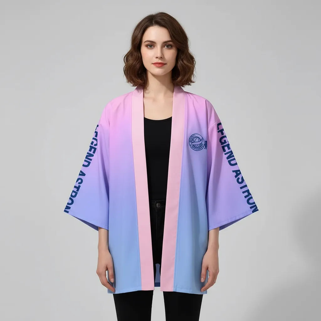 🚀 Veste kimono unisexe : inspirée de l’univers et du rêve spatial, cette pièce combine esthétique japonaise et vision futuriste. Son dégradé de violet et de bleu évoque les galaxies lointaines, tandis que son motif d’astronaute symbolise l’aventure et la curiosité.