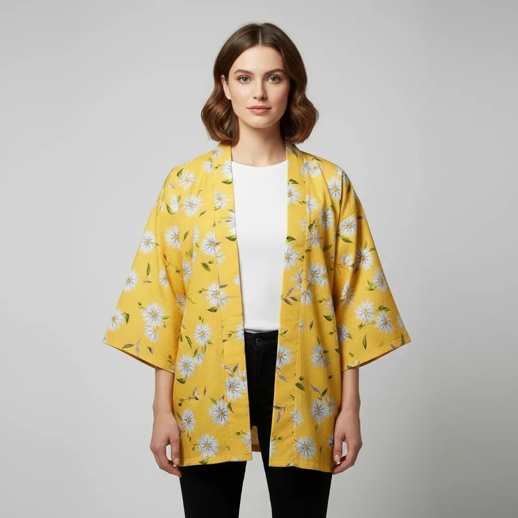 Haori jaune fleuri : fraîcheur estivale et élégance japonaise