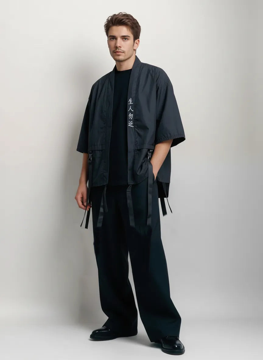 Cette veste kimono streetwear homme noir marie parfaitement la culture japonaise traditionnelle et l’esthétique urbaine moderne. Conçue en 100 % polyester, elle est légère, fluide et agréable à porter tout au long de l’année.
